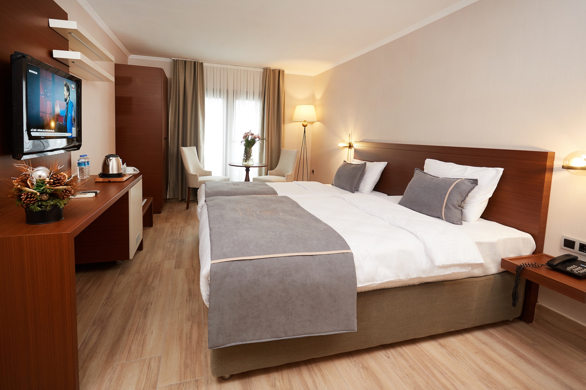 Standart odalarımız yaklaşık 23 m2 boyutundadır. Odalarımızda iki ayrı yatak ve çift kişilik yatak seçeneklerimiz mevcuttur. İhtiyaca göre yatak ilavesi yapılabilir. Çocuklu aileler ve gruplar için uygundur.